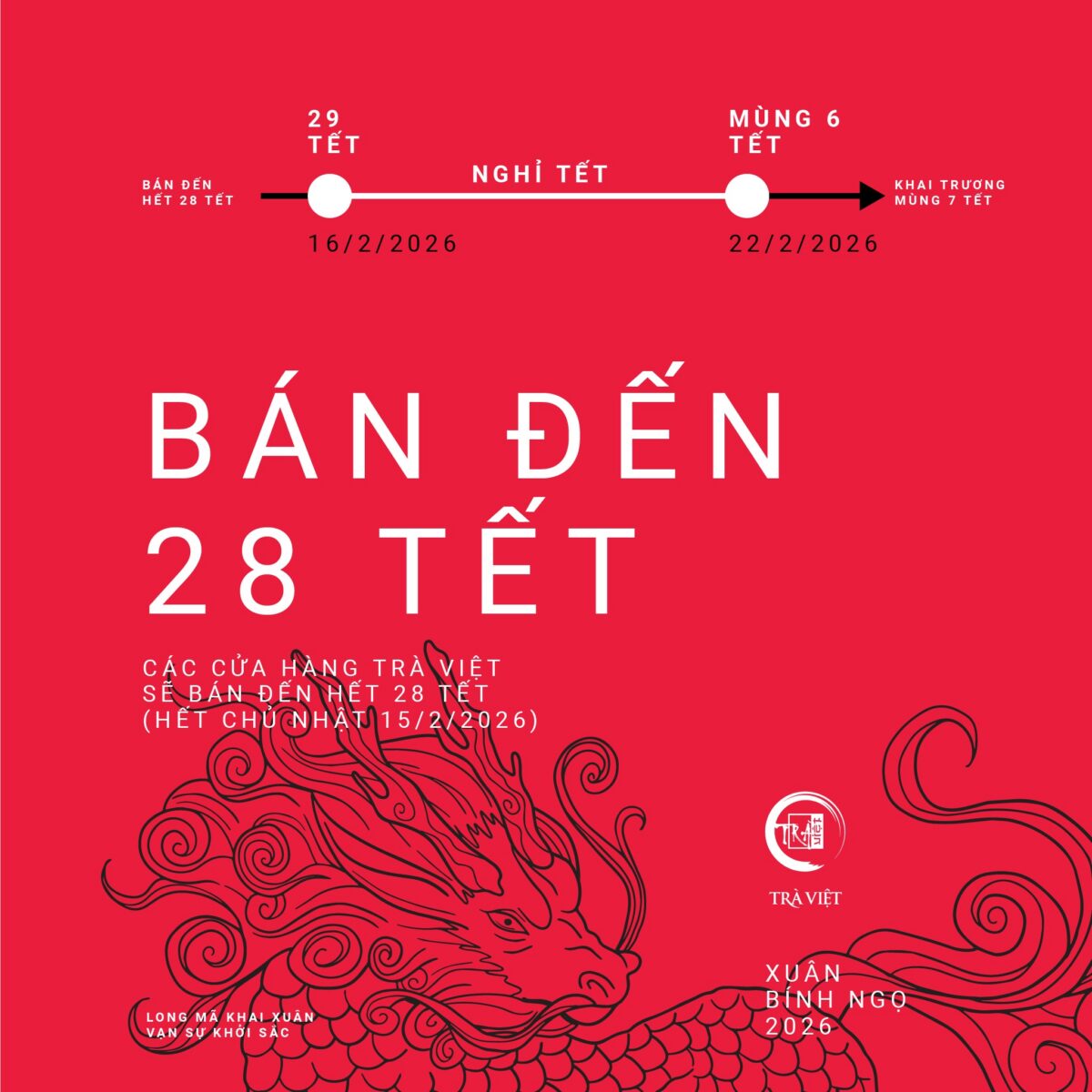 Trà Việt nghỉ Tết từ ngày 29 Tết (16/02/2026).